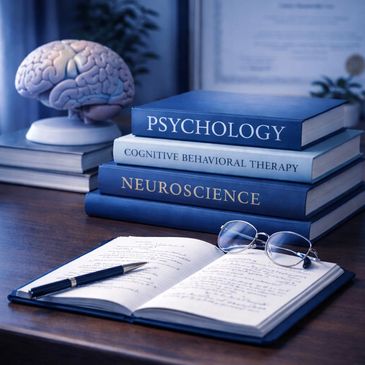 A prática clínica utiliza princípios da Terapia Cognitivo-Comportamental (TCC), abordagem amplamente reconhecida na psicologia por sua eficácia no tratamento de diferentes dificuldades emocionais e comportamentais.